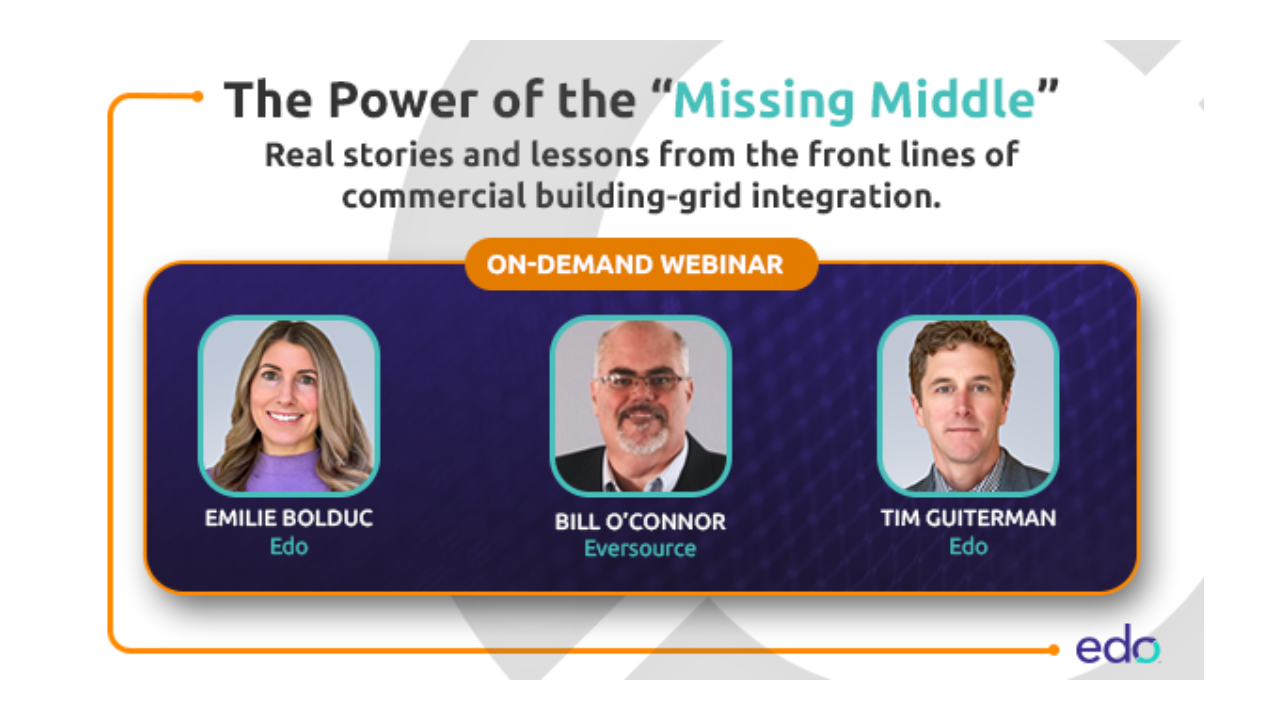 In this webinar, Edo and Eversource share real-world lessons from deploying automated demand flexibility across schools, municipal facilities, and other mid-sized commercial buildings. The discussion focuses on what actually works—from enrollment and automation to improving performance over time—and how these buildings can support grid reliability without disrupting occupants.